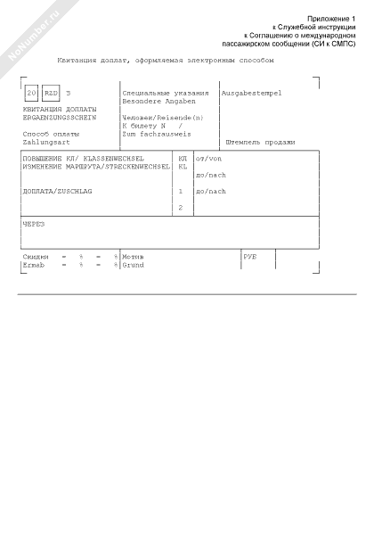 Квитанция доплат, оформляемая электронным способом. Серия З (международное пассажирское сообщение) (рус./нем.)
