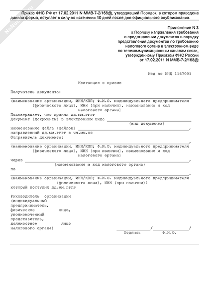 - Источник– Приказ ФНС РФ от 17.02.2011 № ММВ-7-2/168@