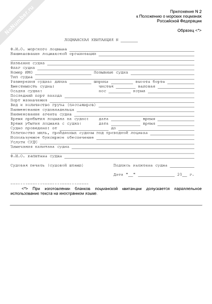 Лоцманская квитанция, подтверждающая право лоцмана на лоцманскую проводку судна (рекомендуемый образец заполнения)