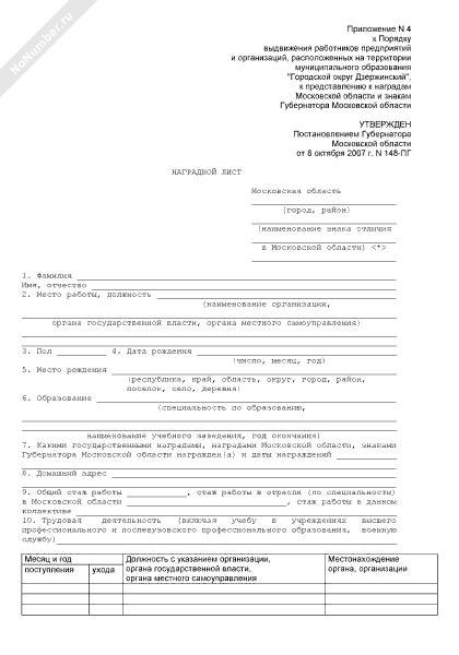 - 306Наградной лист на кандидата для представления к награде Московской области, знаком Губернатора Московской области