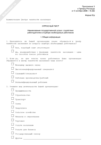 - 360Опросный лист. Наименование государственной услуги: содействие работодателям в подборе необходимых работников. Форма № 01Р