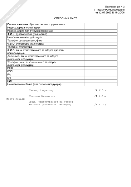 - 343Опросный лист для оформления заявки на бланки документов государственного образца об уровне образования и (или) квалификации