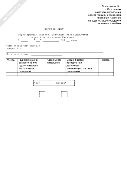 - 341Опросный лист для открытого голосования граждан городского поселения Нахабино Красногорского муниципального района Московской области