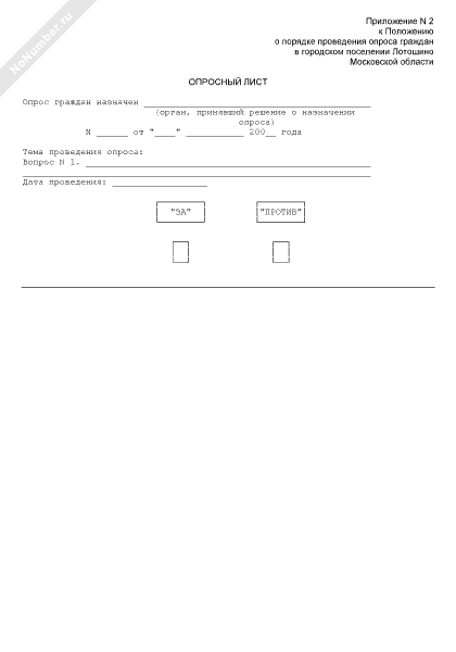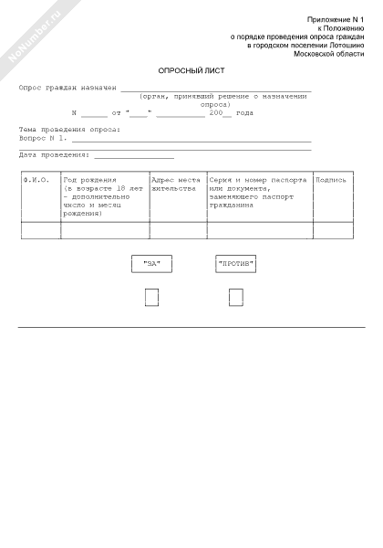 - 345Опросный лист для проведения тайного голосования граждан городского поселения Лотошино Московской области