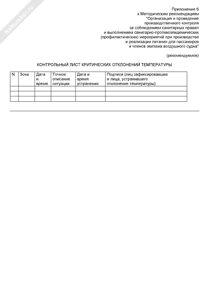 - 123Контрольный лист критических отклонений температуры при хранении продуктов питания для пассажиров и членов экипажа воздушного судна