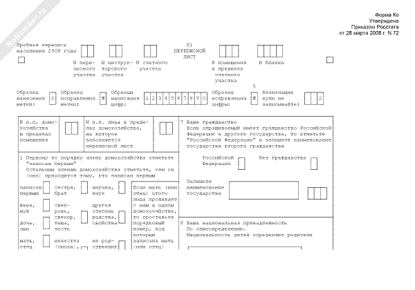 - 130Короткий переписной лист для метода опроса населения в 2008 году. Форма № КО