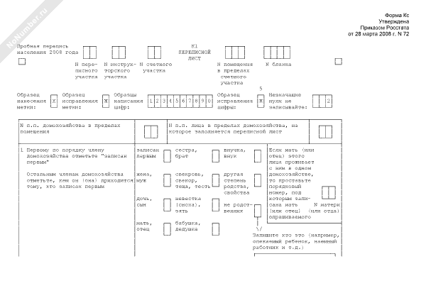 - 131Короткий переписной лист для метода самосчисления населения в 2008 году. Форма № КС