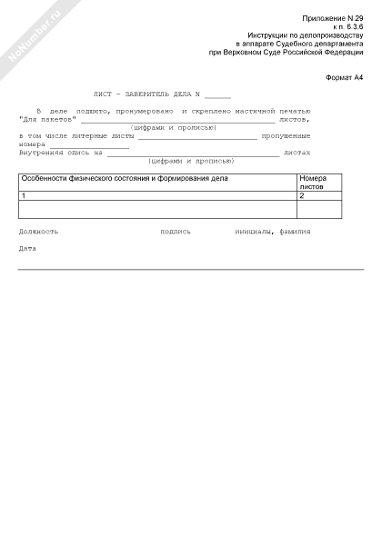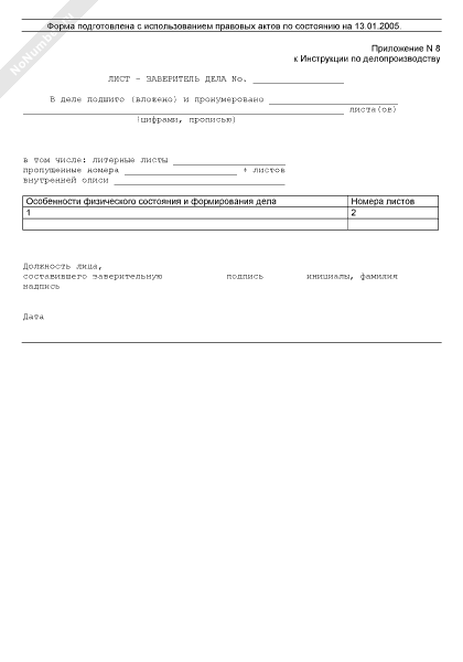 - 132Лист — заверитель дела (приложение к инструкции по делопроизводству)
