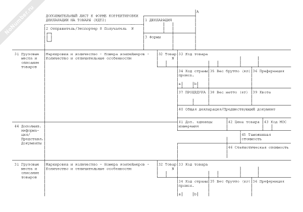 Дополнительный лист к форме корректировки декларации на товары (КДТ2)