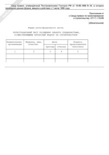 Формы для составления и ведения журнала авторского надзора. Регистрационный лист посещения объекта специалистами, осуществляющими авторский надзор за строительством (рекомендуемый образец заполнения)