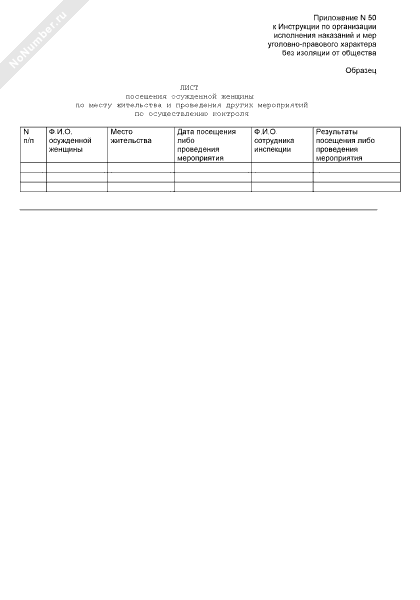 Лист посещения осужденной женщины по месту жительства и проведения других мероприятий по осуществлению контроля (рекомендуемый образец заполнения)