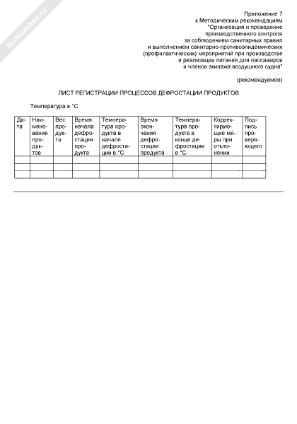 Лист регистрации процессов дефростации продуктов питания для пассажиров и членов экипажа воздушного судна (рекомендуемая форма)