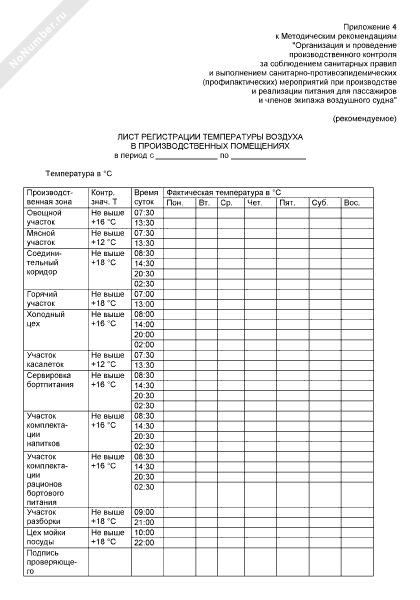 Лист регистрации температуры воздуха в производственных помещениях по производству бортового питания (рекомендуемая форма)
