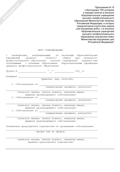 Лист собеседования с кандидатами, награжденными по окончании образовательных учреждений среднего (полного) общего или начального профессионального образования золотой (серебряной) медалью или окончившими с отличием образования образовательные учреждения среднего профессионального образования