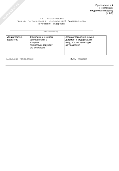 Лист согласования проекта постановления (распоряжения) Правительства Российской Федерации в Федеральной службе по надзору в сфере защиты прав потребителей и благополучия человека