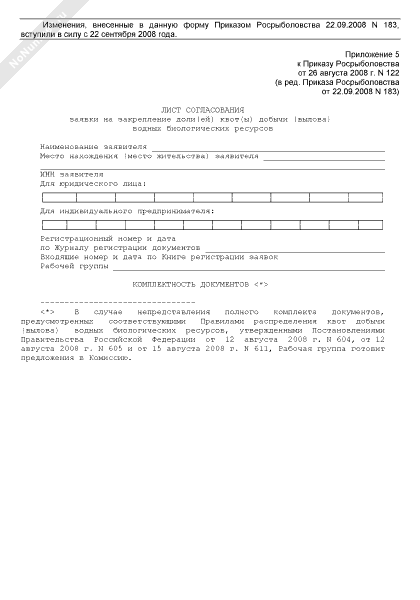 - Источник– Приказ Росрыболовства от 26.08.2008 № 122 (редакция от 16.07.2010 № 635, с изм. от 05.05.2010 № 430)