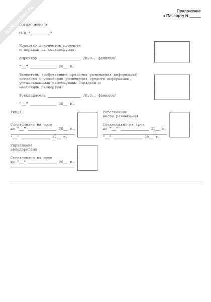 Лист согласования (приложение к паспорту средства размещения информации в городском поселении Сергиев Посад)