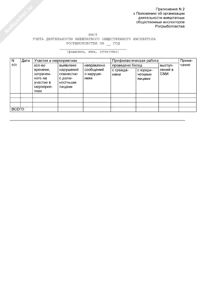 Лист учета деятельности внештатного общественного инспектора Росрыболовства (рекомендуемый образец заполнения)