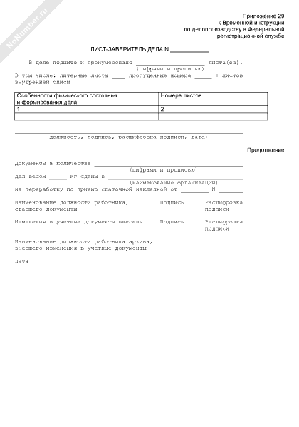 Лист-заверитель дела Федеральной службы судебных приставов (рекомендуемый образец заполнения)
