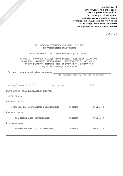 Титульный лист нормативно-технической документации по топливоиспользованию. Книга 2 «Графики исходно-номинальных удельных расходов топлива, графики минимальных электрических нагрузок, макет расчета номинальных показателей, нормативов удельных расходов топлива» (рекомендуемый образец заполнения)