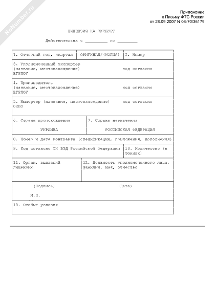Лицензия на экспорт прутков для армирования железобетонных конструкций из Украины в Российскую Федерацию (рекомендуемый образец заполнения)