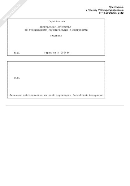 Лицензия Федерального агентства по техническому регулированию и метрологии по изготовлению и ремонту средств измерений (рекомендуемый образец заполнения)