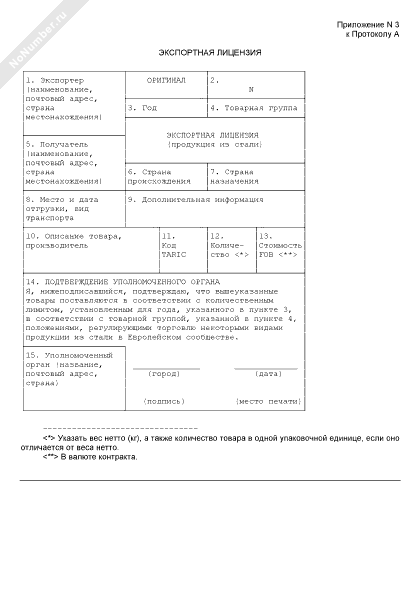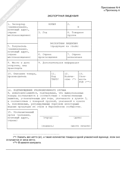 Экспортная лицензия на продукцию из стали (оригинал)