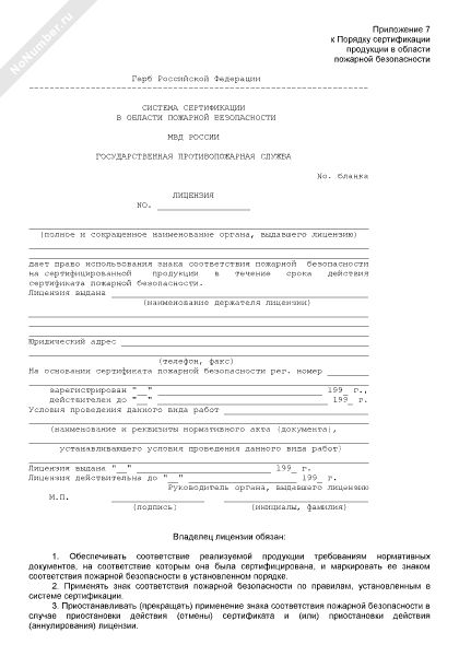 Лицензия на право применения знака соответствия пожарной безопасности (рекомендуемый образец заполнения)