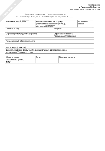 Лицензия открытая (индивидуальная) на поставку товара в Российскую Федерацию из Украины