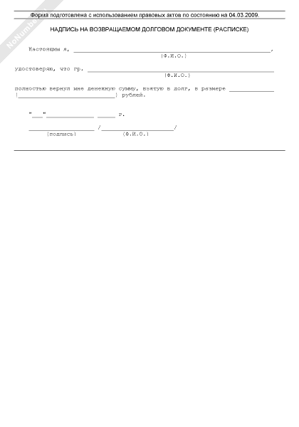 - 7Надпись на возвращаемом долговом документе (расписке)