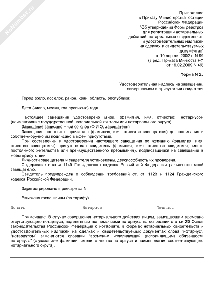 - 17Удостоверительная надпись на завещании, совершаемом в присутствии свидетеля (форма № 25)