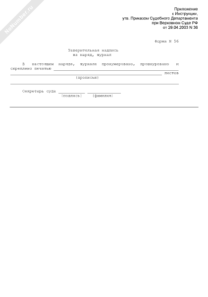 - 3Заверительная надпись на наряд, журнал. Форма № 56