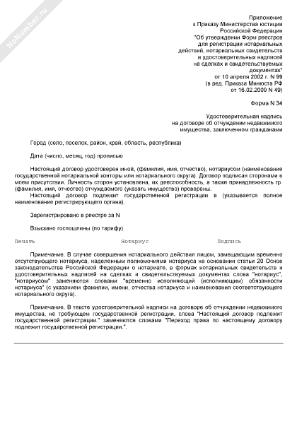 - 26Удостоверительная надпись на договоре об отчуждении недвижимого имущества, заключенном гражданами. Форма № 34