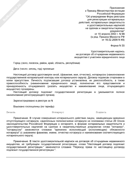 - 27Удостоверительная надпись на договоре об отчуждении недвижимого имущества с участием юридического лица. Форма № 35