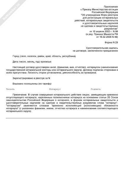 - 21Удостоверительная надпись на договоре, заключенном гражданином (форма № 29)