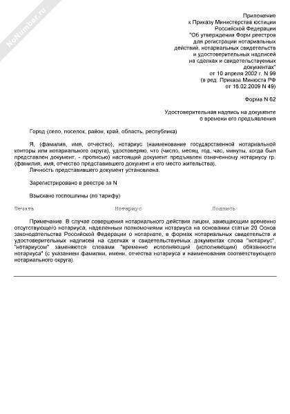 - 59Удостоверительная надпись на согласии. Форма № 73