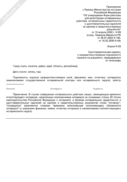 - 51Удостоверительная надпись о засвидетельствовании подлинности подписи на документе, передаваемом по телеграфу. Форма № 59