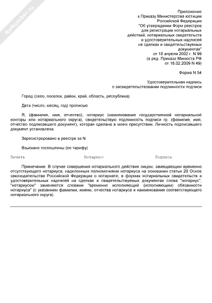 - 46Удостоверительная надпись о засвидетельствовании подлинности подписи гражданина. Форма № 54