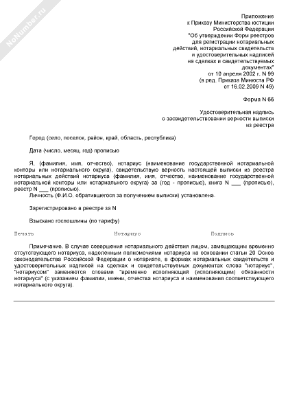 - 58Удостоверительная надпись о засвидетельствовании верности выписки из реестра. Форма № 66