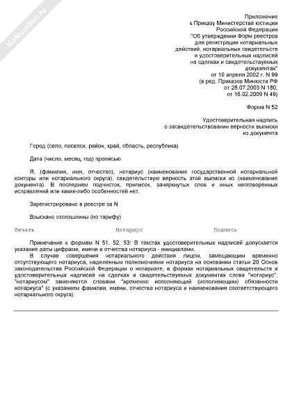 - 44Удостоверительная надпись о засвидетельствовании верности выписки из документа. Форма № 52