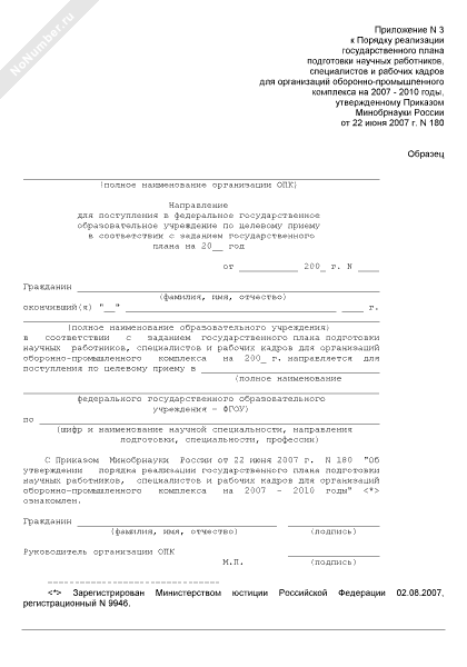 - Источник– Приказ Минобрнауки РФ от 22.06.2007 № 180