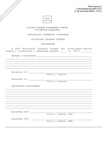 - Источник– Распоряжение ЦТУ МЗТ от 29.09.2003 № 314