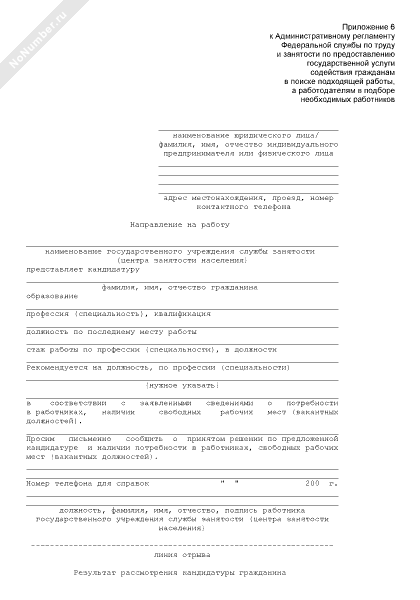 Направление кандидатуры на работу к работодателю, в соответствии с заявленными сведениями о потребности в работниках в государственное учреждение службы занятости (рекомендуемый образец заполнения)