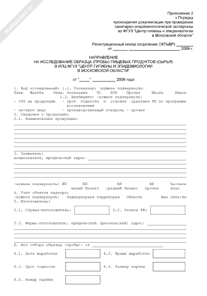Направление на исследование образца (пробы) пищевых продуктов (сырья) в ИЛЦ ФГУЗ «Центр гигиены и эпидемиологии в Московской области»