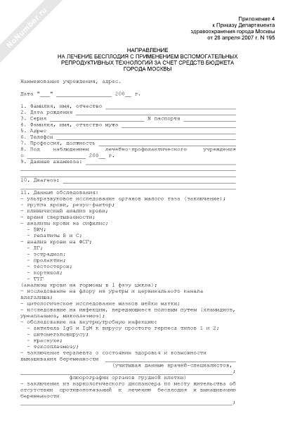 - Источник– Приказ Департамента здравоохранения г. Москвы от 28.04.2007 № 195