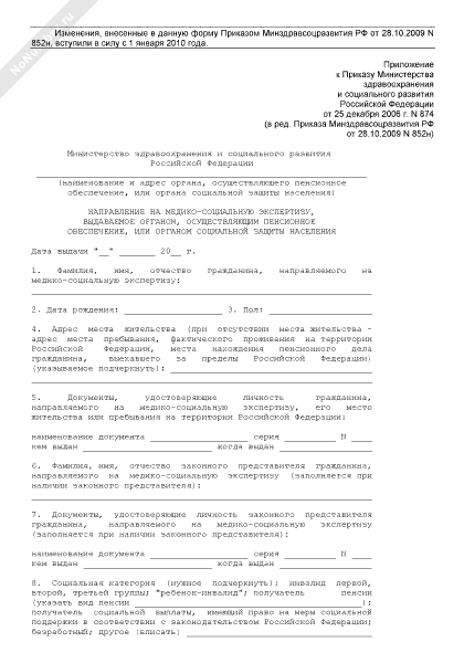 - Источник– Приказ Минздравсоцразвития РФ от 25.12.2006 № 874 (редакция от 28.10.2009 № 852н)