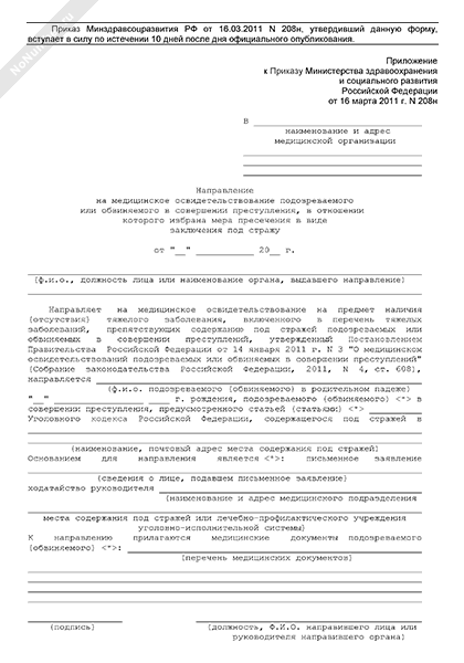 - Источник– Приказ Минздравсоцразвития РФ от 16.03.2011 № 208н