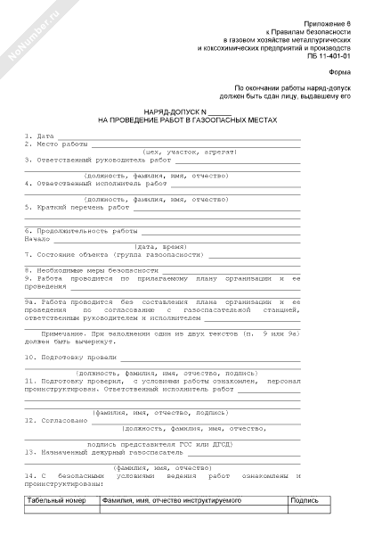 Наряд-допуск на выполнение работ повышенной опасности. Форма № НД-90
