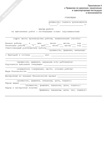 Наряд-допуск на выполнение работ с пестицидами и(или) агрохимикатами