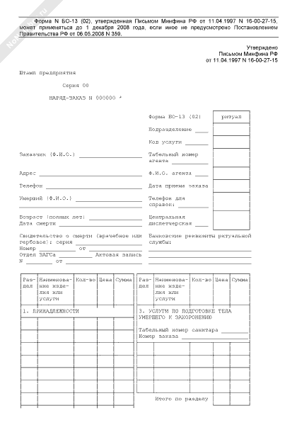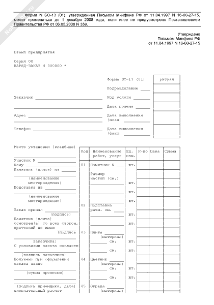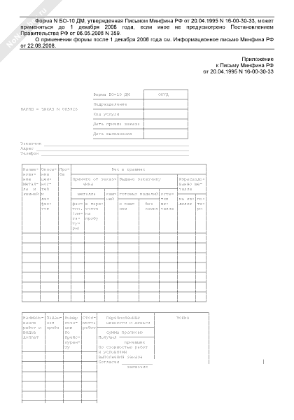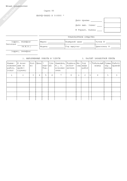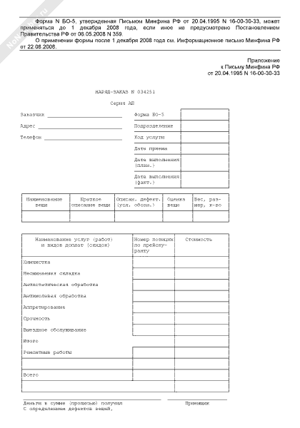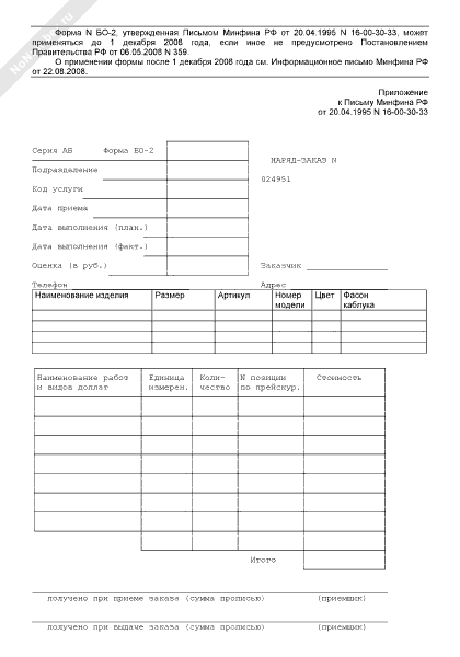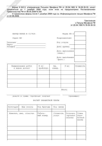Наряд-заказ. Форма № БО-5 (рекомендуемый образец заполнения)